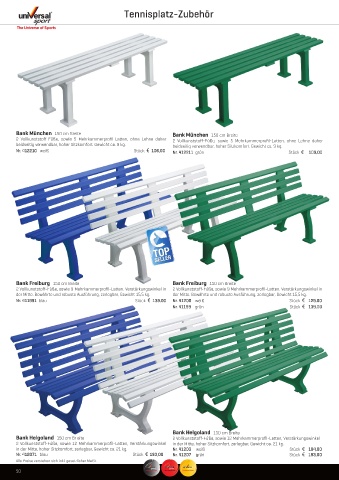 Bank Helgoland 150 cm Br eite 2 Vollkunststoff-Füße, sowie 12 Mehrkammerprofil-Latten, Verstärkungswinkel