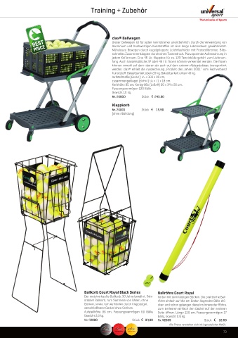 jedem Kofferraum. Eine 46 Ltr. Klappbox für ca. 120 Tennisbälle gehört zum Lieferum-